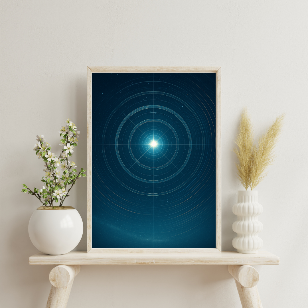 Designed for modern interiors, creative studios, and astronomy lovers, these digital prints feature A4 masters with alternate social ratios for flexible framing and display. Expect painterly textures, fine micro-details, and restrained glows that read from across the room and reward a close look. Curate a single showpiece or build a gallery wall that moves from warmth (Sun) to stillness (Polaris) through tides, rings, storms, and frost - an ephemeris of wonder for everyday rooms.