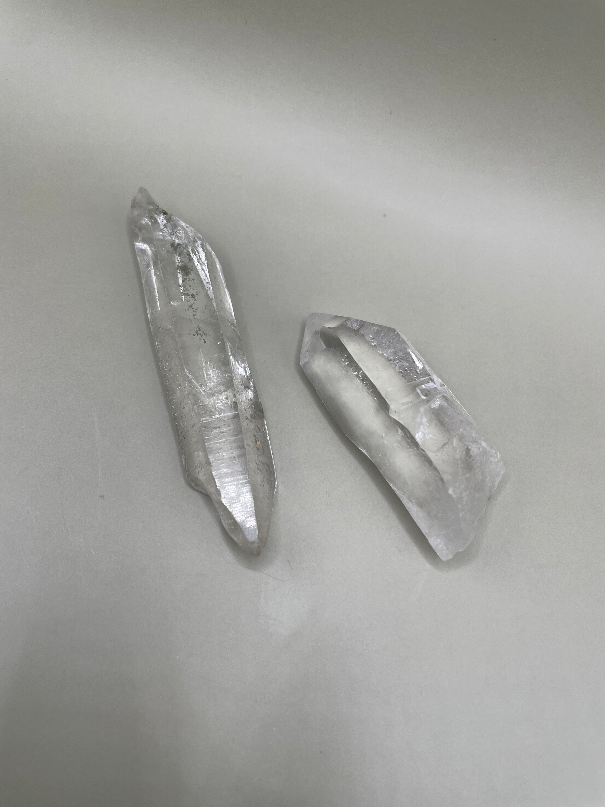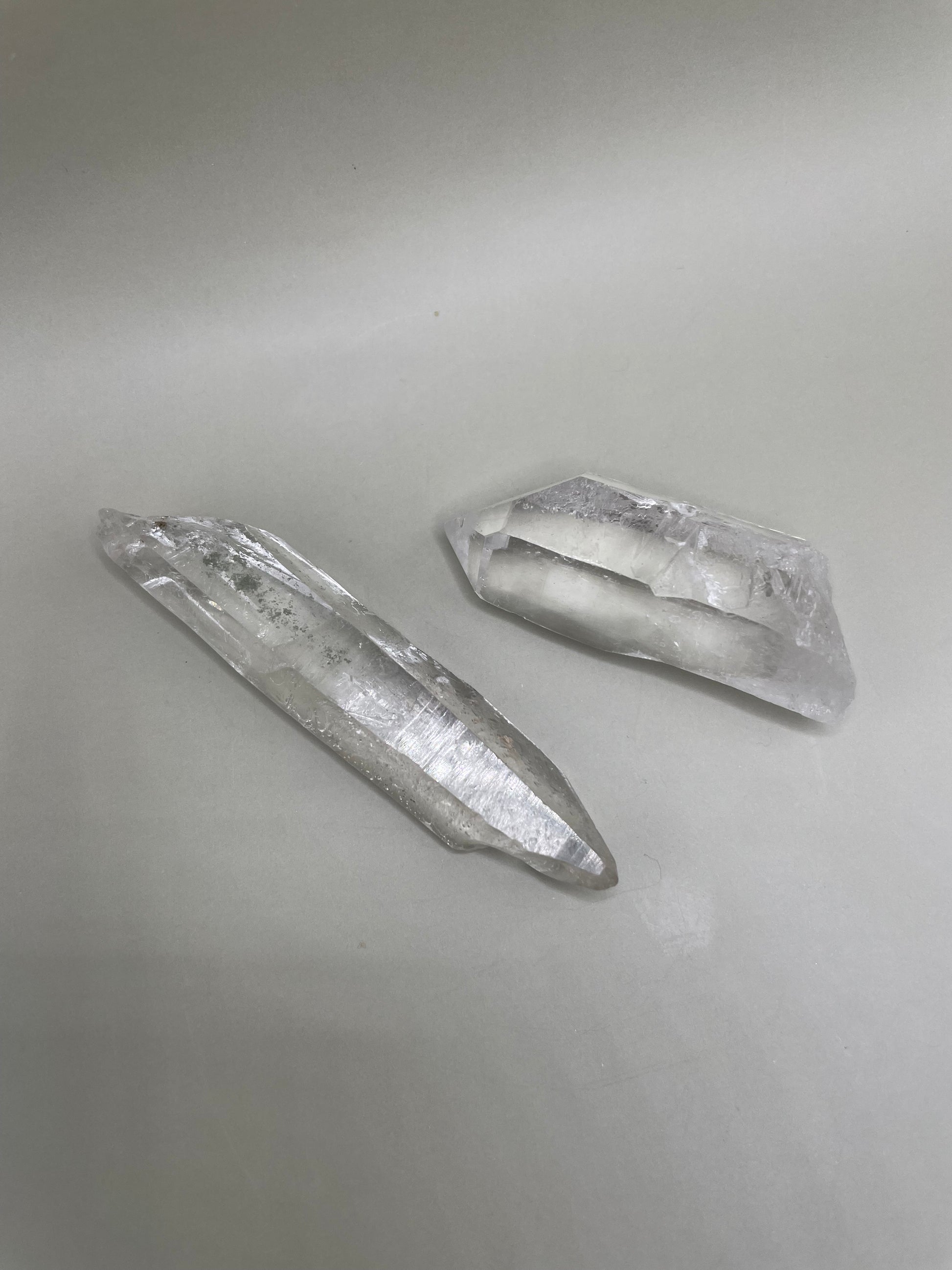 Clear Quartz is the great amplifier - it brightens whatever you pair it with and helps organize scattered energy into a single, focused beam. In raw point form, the natural termination works like an arrow for intention-setting, meditation, and room cleansing. The extra-good clarity in this batch makes them sparkle under daylight, with some showing gentle veils and tiny rainbows. Protective without heaviness, clarifying without edge - easy to use, every day.