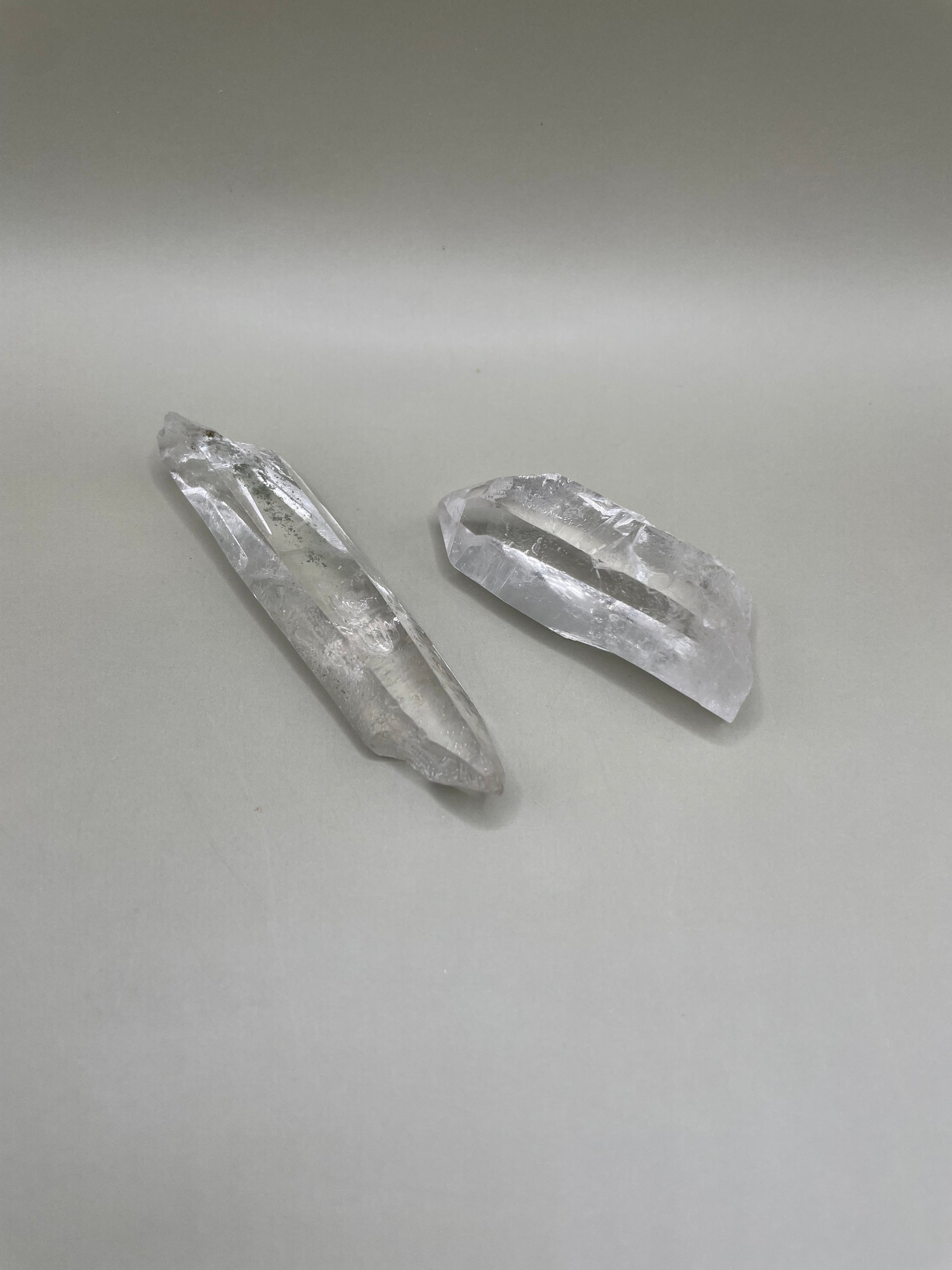 Crystal-clear and extra high grade. Each Raw Clear Quartz Point is a naturally formed wand of light that clarifies the mind, amplifies intentions, and directs energy where you want it to go. These points are perfect for altars, grids, breathwork, and anywhere you’d like a clean, bright reset.