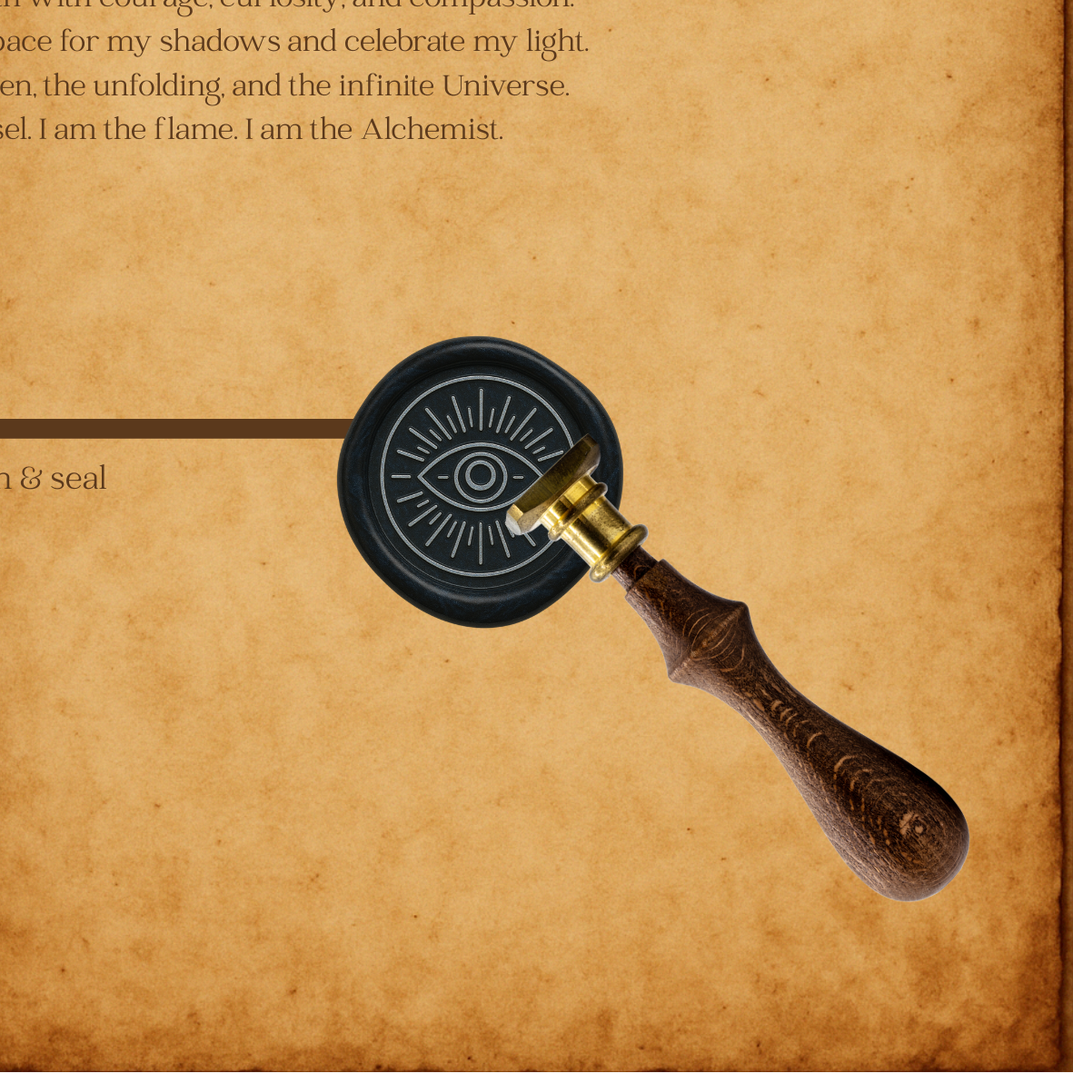 Step into the realm of spirit and cosmic connection with The Aether Wax Seal Collection. Crafted from midnight blue and black marbled wax with holographic silver metallic stamps, this collection features sacred spirals, lotus mandalas, third eyes, and celestial globes surrounded by orbiting planets. These mystical seals invite you to honor your inner wisdom, universal energy, and the infinite mysteries beyond, perfect for sacred letters, rituals, and soul-centered correspondence.
