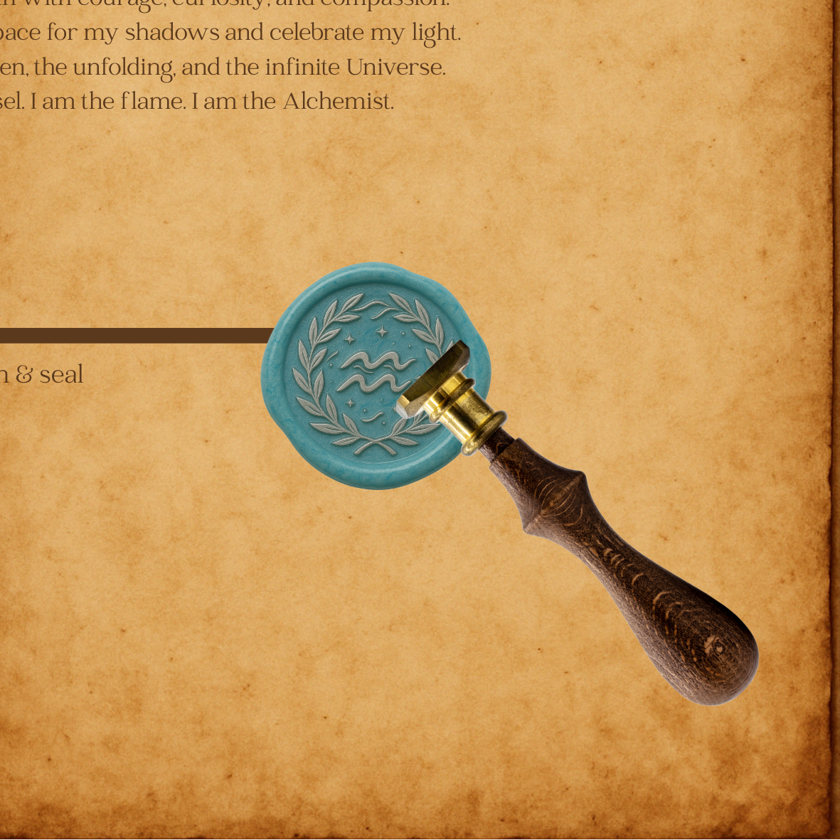 The Aquarius Wax Seal Collection by The Astra Sanctuary celebrates the visionary spirit and unique energy of Aquarius. Each seal, cast in icy blue with polished silver details, embodies the essence of innovation, unity, and cosmic wisdom.