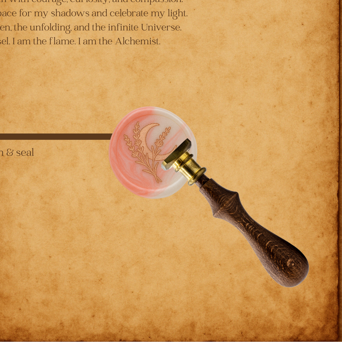 The Divine Feminine Wax Seal Collection invites you to celebrate feminine power and beauty through elegant wax seals. Made from marbled blush pink and iridescent pearl wax with rose gold metallic designs, each seal embodies symbols of intuition, transformation, and grace. Perfect for letters, journals, or rituals, this collection adds a sacred, radiant touch to your creative and spiritual practices.