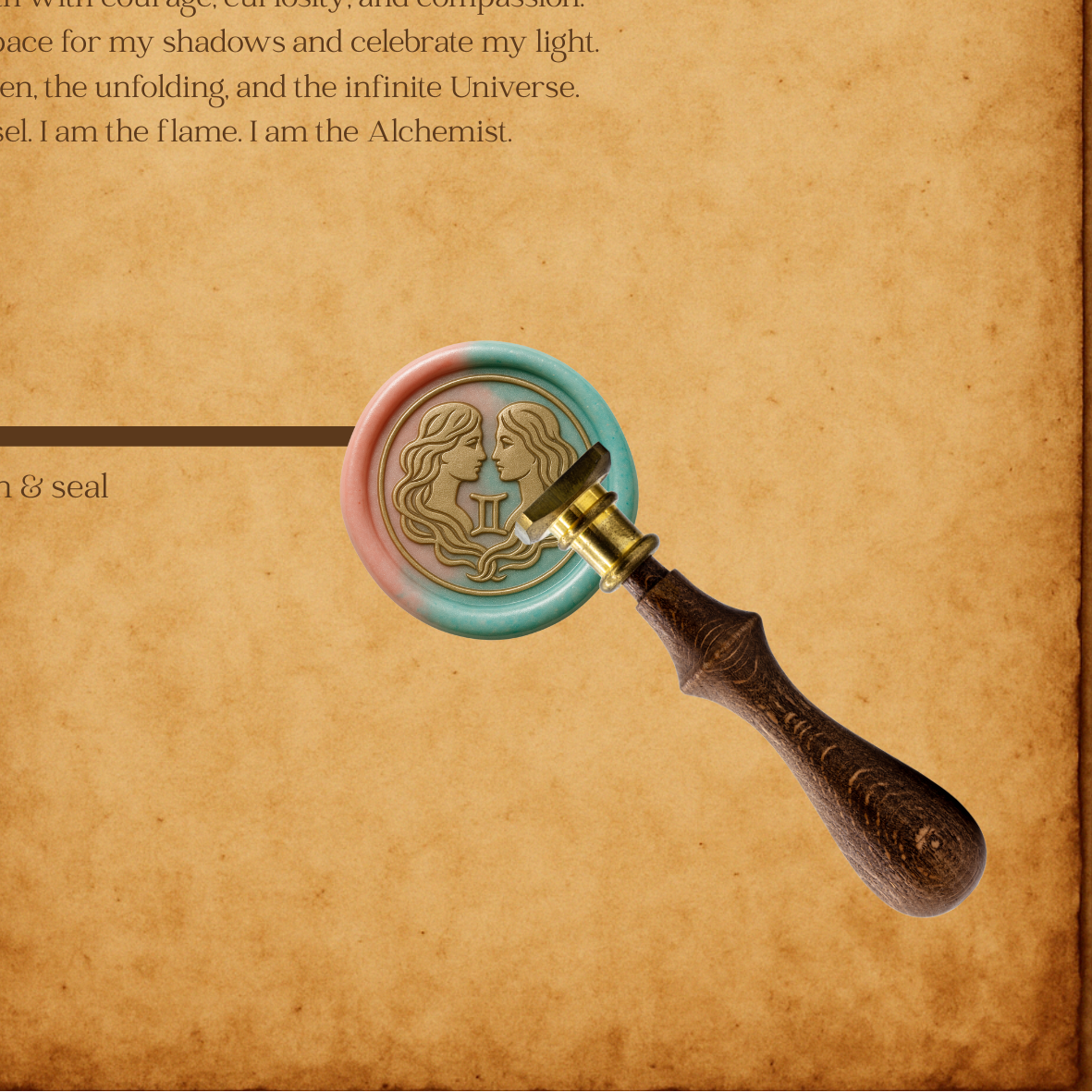 More than a decorative touch, every wax seal in this collection becomes a messenger of insight, inspiration, and lively connection - a blessing for intentions set in motion, conversations across distance, and moments of discovery. Let these impressions dance across your creations, infusing every letter, journal, or sacred tool with Gemini’s wit, versatility, and cosmic curiosity. Choose the design that calls to your spirit, and let each seal be a luminous reminder of your voice, your vision, and the boundless magic of change.