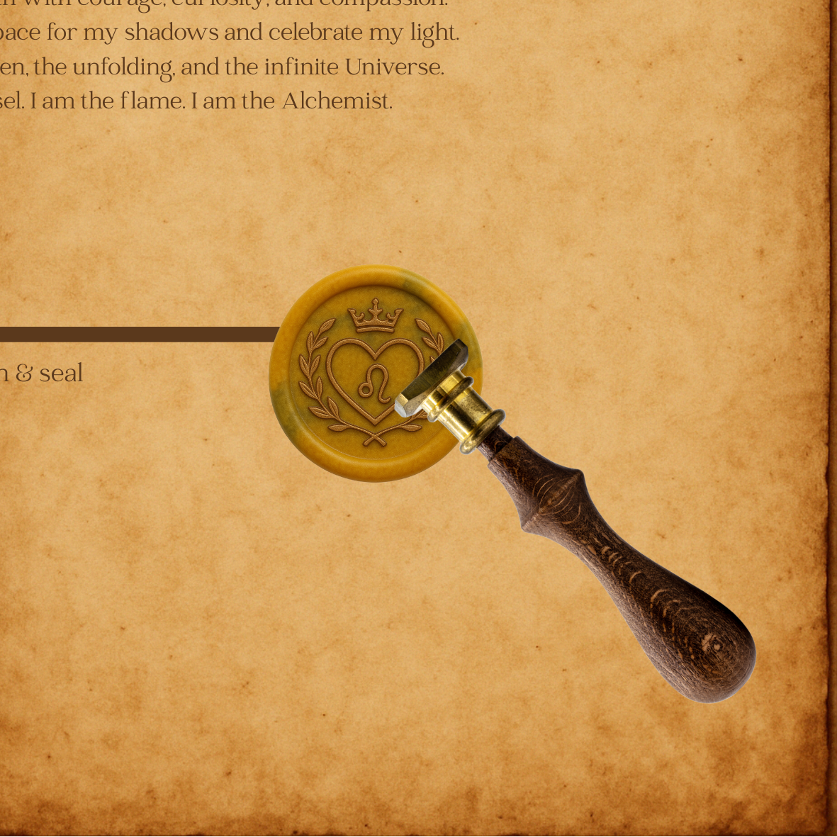 Unleash the brilliance of your spirit with The Leo Wax Seal Collection by The Astra Sanctuary. Each seal is a radiant tribute to Leo’s golden heart—bold, warm, and magnificently expressive - featuring designs like the Regal Sun, Constellation, and Crowned Heart.