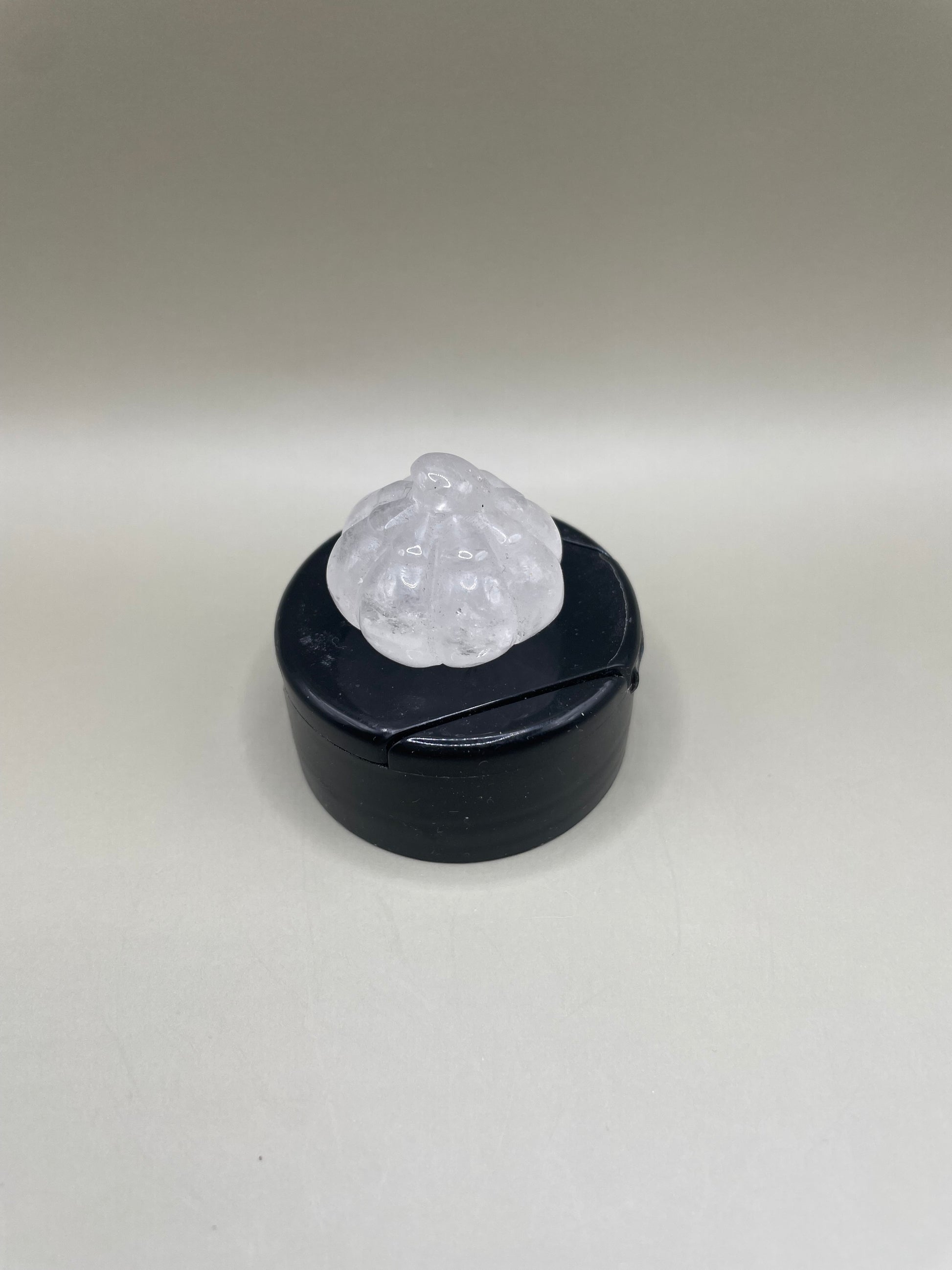 One hand-carved small Clear Quartz pumpkin (around 28x28x21 mm, ~20 g). Every crystal is unique, carrying its own natural shimmer, shape, and sacred energy - handpicked to support your journey.